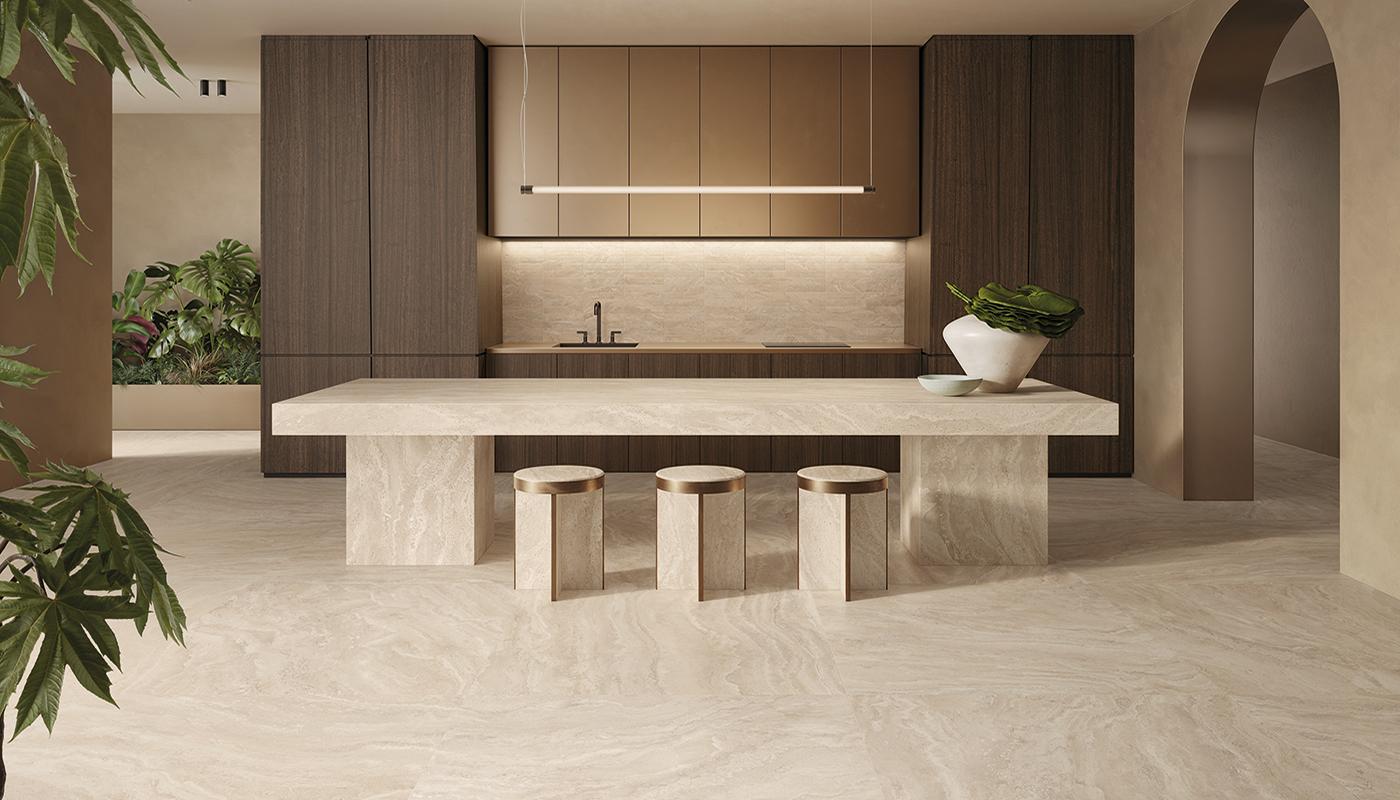 Two personalities coexist in the heart of travertine: one is authentic and natural with a minimal look; the other is compacted by human hands.