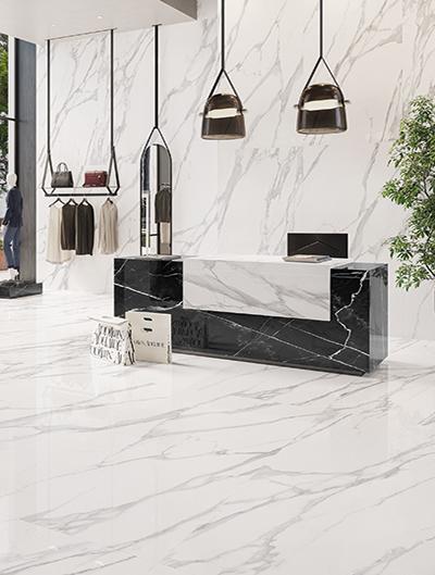 The project by Emilceramica originated from the idea of reinterpreting marble, a material of timeless charm, in a contemporary key through an unconventional choice of sizes, finishes and decorative elements.