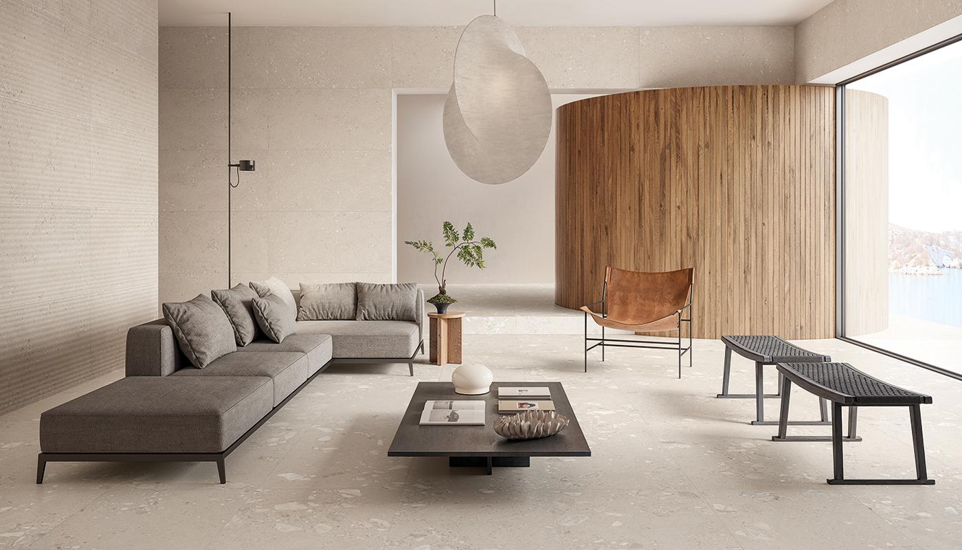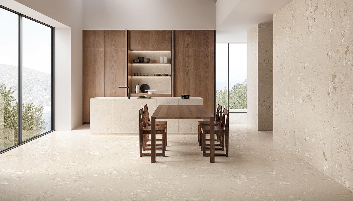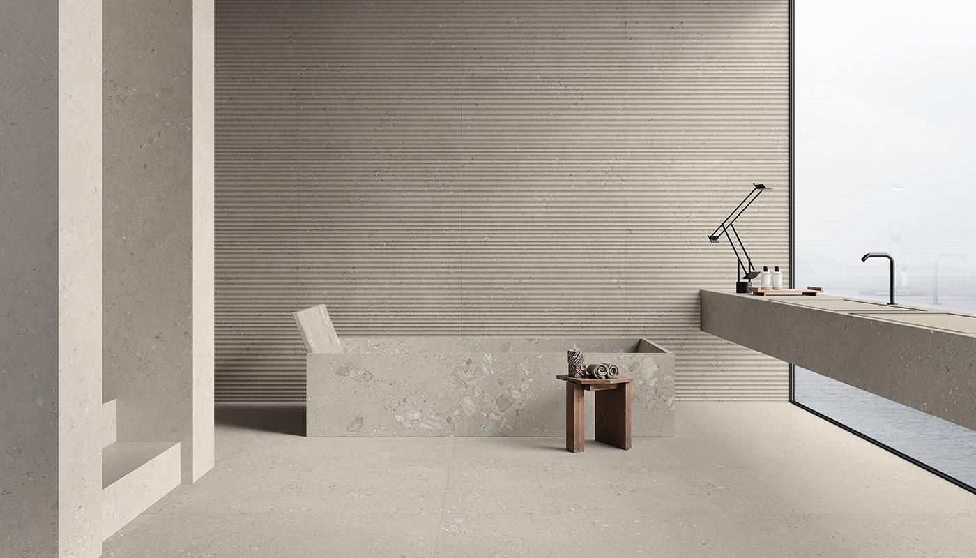 GemmaStone is a ceramic collection inspired by Shellstone, a sedimentary rock of marine origin that contains fossil fragments and marble inclusions formed over thousands of years. Designed to dialogue between each other, the collection’s two surfaces offer infinite compositional possibilities, combining accent and continuity, character and restraint.