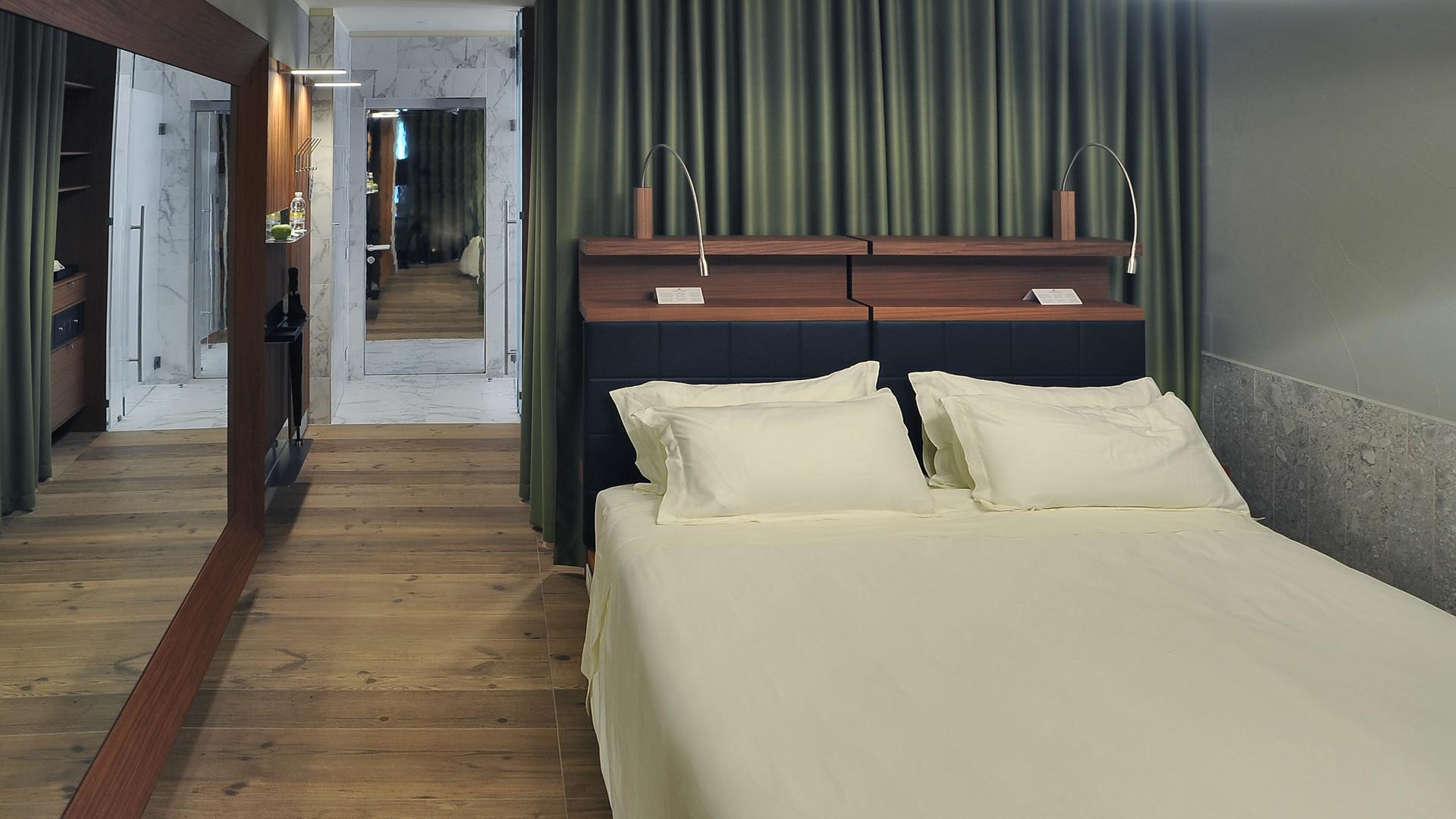 El arquitecto Alessio Princic, coordinador del proyecto, ha centrado su atención en respetar el entorno realizando un complejo contemporáneo y ecosostenible —completamente inmerso en el paisaje—, que aúna armonía estética y eficiencia energética. La colección Millelegni acoge a los huéspedes en las treinta y tres habitaciones Comfort y Suite y en los espacios de la amplia área de gym y spa a disposición de los clientes del nuevo resort, que se asoma al Golf Club de Udine. La elección del color Larch remite a los efectos típicos del abedul canadiense y casa con el talante de respeto medioambiental de la intervención. Para revestir los mil trescientos metros cuadrados de la obra se han utilizado los formatos de 20 x 120 y de 30 x 120 cm.