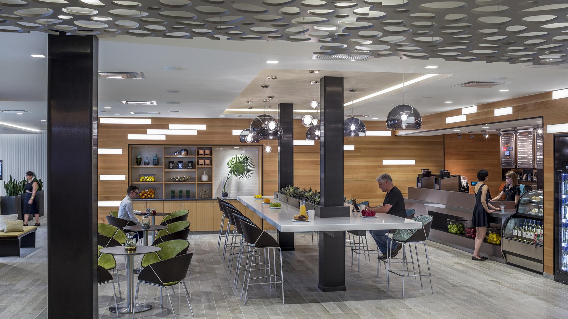 De l'imitation bois à l'imitation ciment, la collection a su donner un aspect moderne aux zones communes et au restaurant, où la chaleur traditionnelle du cadre s'assortit à une ambiance contemporaine. Le hall et les salons s'habillent d'un effet bois blanchi dans la nuance Miscela Sabbia qui épouse et s'accorde à la perfection à l'atmosphère du complexe. La collection In-Essence affiche un véritable look naturel et minimaliste, tout en apportant les qualités techniques qui ont su remplir les critères de projet d'un lieu très fréquenté. En effet, le grès cérame Provenza illumine les pièces, est facile à nettoyer, solide, antidérapant, et sa texture est douce au toucher.