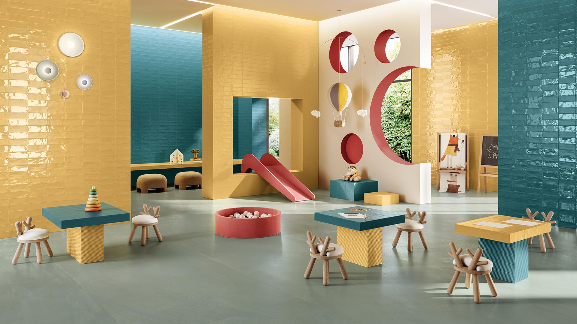 Boho nursery decor is ideal for parents who love a free-spirited and eclectic style. This decor style is characterized by a mix of textures, natural materials, and earthy tones. Incorporate elements like woven baskets, macramé wall hangings, and colorful rugs. The Ergon Medley collection by Emilgroup can provide the perfect backdrop with its diverse range of tiles that add both texture and visual interest to the nursery. The playful patterns and vibrant colors of these tiles can enhance the boho vibe, making the room feel cozy and inviting.