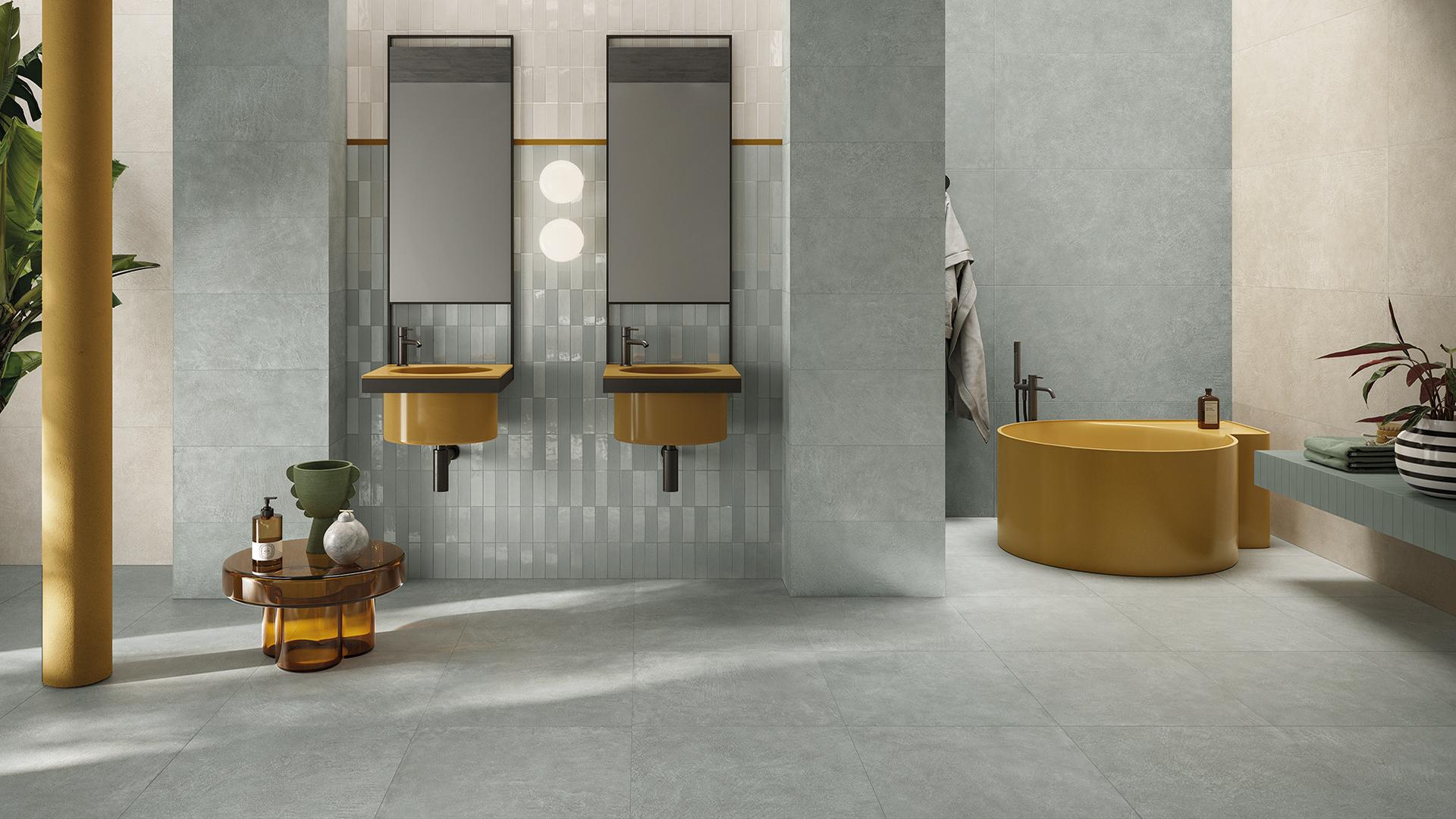 The urban and the natural share a complex relationship. Two voices comparing notes on the ecological transition at times clash in the theatre of the Anthropocene; an ancient dialogue, made up of territory and material, which is renewed and strengthened in the interior design space – a space of green floors. It is a growing trend, which is able to combine green attitudes and contemporary design language. Green tiles are a very current and characterful choice, a chance to bring a piece of nature into the home. A floor which becomes a lawn, a symbolic link with the surrounding world, an exchange between equals – the indoors and outdoors – which creates a new idea of space, where dialogue with the environment becomes a value-based priority.