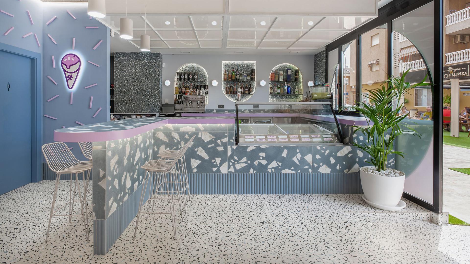 An ice-cream parlour in the heart of Murcia welcomes customers in a vibrant, comfortable interior, where the shapes and colours used in the premises’ design evoke the sweet flavours of the home-made ice-creams and desserts. We chatted to Marta Miñarro, owner of Studio Lemon, which handled the architectural design and selected the various finishes from the Medley by Ergon collection to express the ice-cream parlour’s original, unique personality.