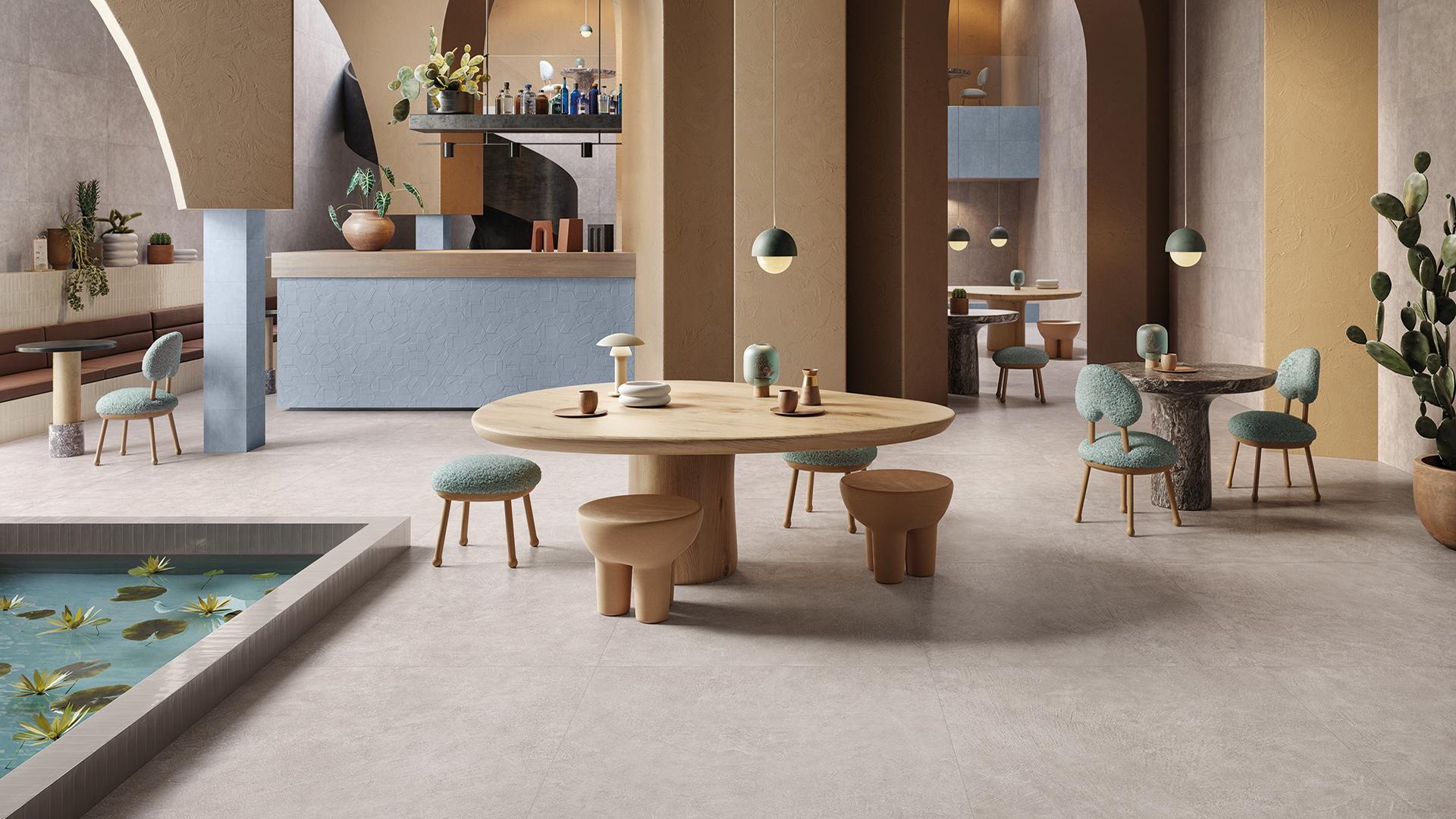 From a marketing perspective, it is key to provide a positive sensation to customers, and the chromatic balance of pastel colors provides an excellent background to make people (and customers) feel at ease. Pastel colors are not limited to wall and floor tiles, but can also be used on countertops, shop counters and display surfaces. Pastel colored porcelain stoneware tiles are an excellent choice for commercial premises due to the technical properties of the material: it is resistant to impacts and wear from foot traffic, is anti-slip and easy to clean, as well as providing almost limitless esthetic possibilities.