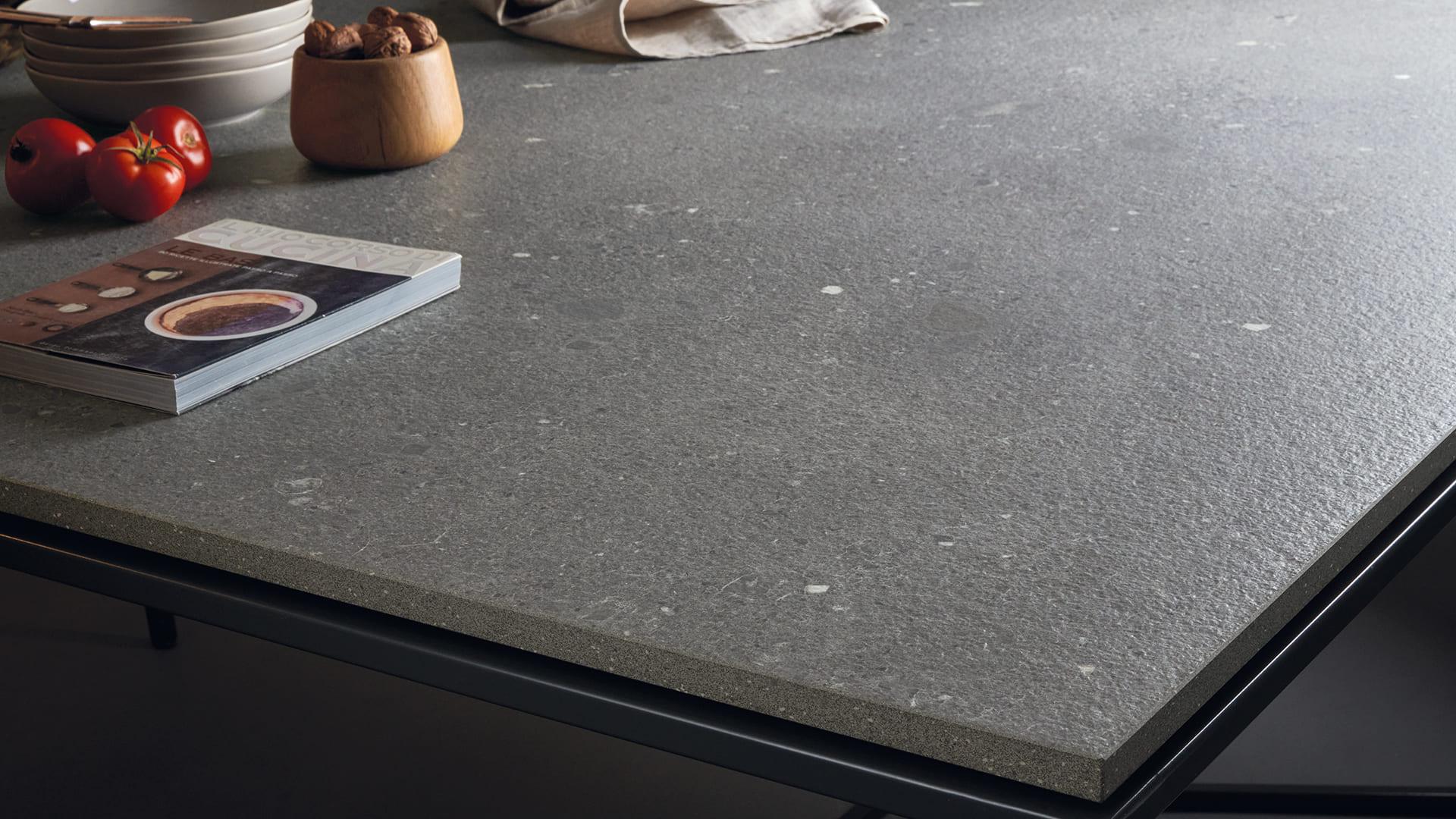 - Grigio di Gré: the lightest and most detailed shade of the Stone range. Perfect for a countertop that contrasts with dark kitchens or for areas very exposed to the sun.