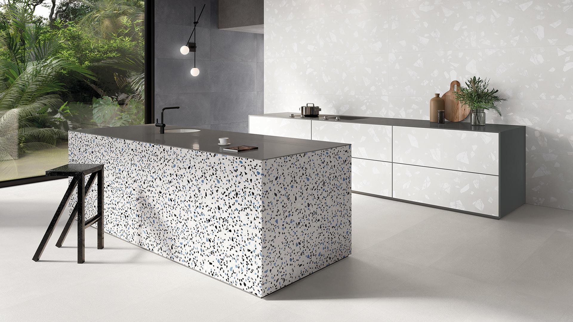 If you consider that shades of gray suggest a retro vision, today the creative possibilities are greater than ever and extremely modern thanks to porcelain stoneware. An incredibly successful combination of performance and aesthetics, suitable for tasteful and contemporary furnishing of any environment. The Medley by Ergon collection is a source of inspiration for contemporary ideas, an innovation which reinterprets the structure of Venetian terrazzo flooring and brings it on-trend thanks to new geometries and interlocking effects. The notes of modernity are organized in a playlist which adapts perfectly to the mood of each project: the three versions, Classic, Rock, and Pop are available in six colors which add more irreverent shades such as green and pink to gray. A continuous evolution, of which gray is the irreplaceable engine.