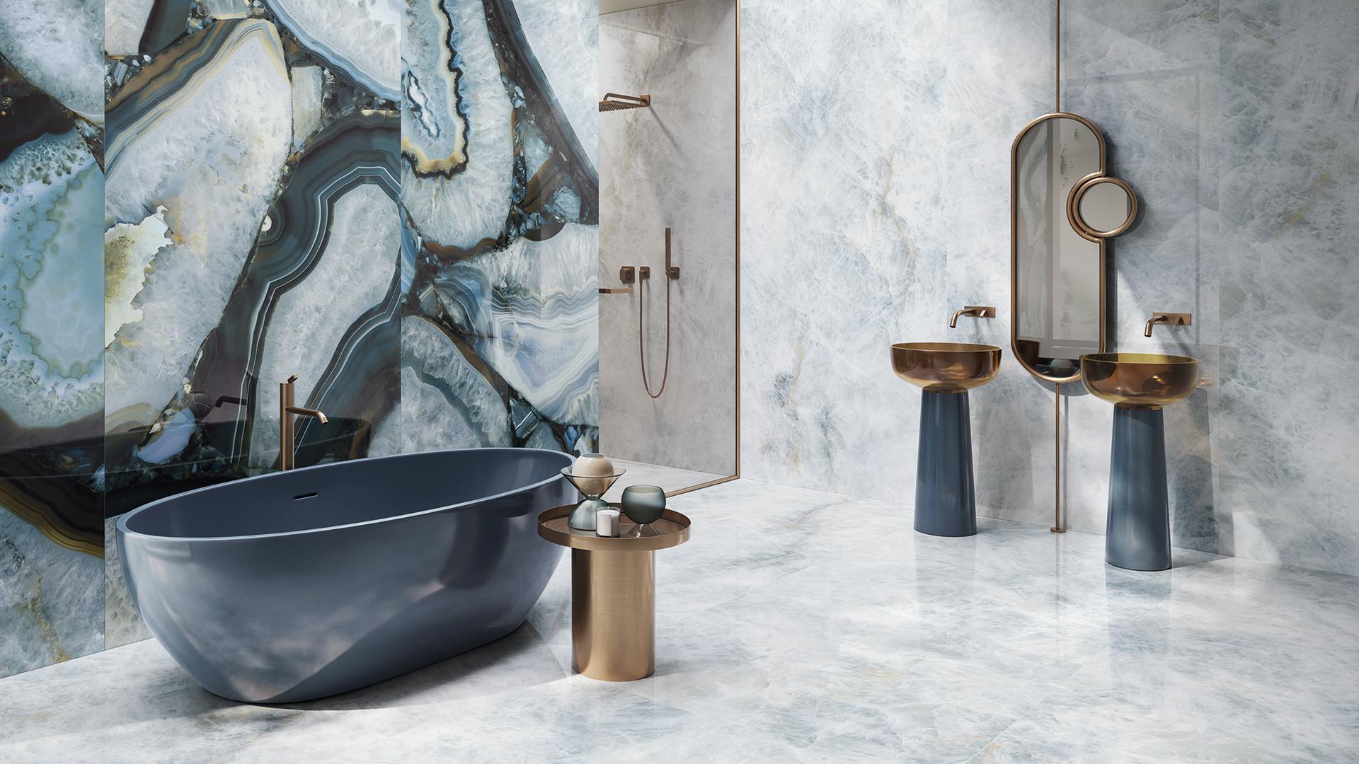 In addition to floors, wall coverings are essential in setting the mood of a luxury residence. Porcelain stoneware, thanks to its versatility, can be used for endless design solutions.