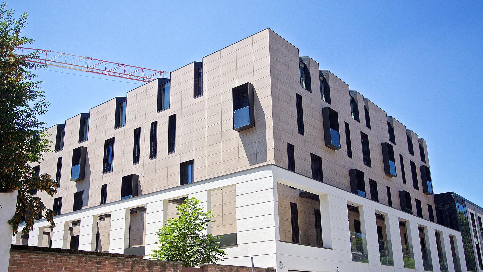 This residential complex project in Milan was carried out by the architectural firm DFA Partners. There were two main requirements: a high level of design, ensuring aesthetic continuity with the exterior, and high technical performance – weathering resistance, energy saving and optimisation of maintenance costs for cleaning the facades.