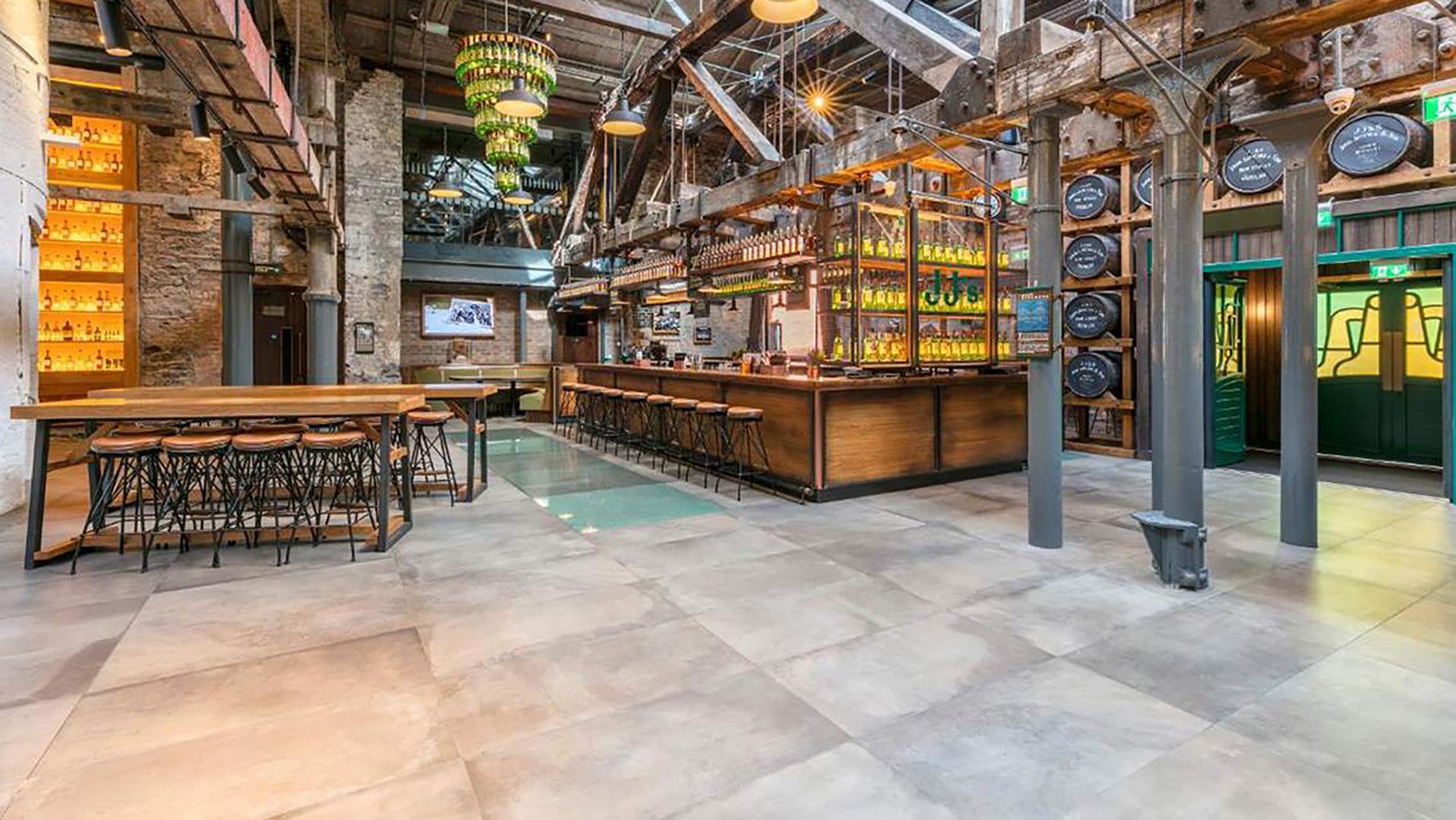 The aim of the project was to cover a 4,800m2 area with a material that guarantees aesthetic harmony and above all technical characteristics that meet the needs of a location that accommodates many people and is constantly exposed to materials that scratch the flooring, while also simplifying cleaning and sanitisation operations. Acustico 12, in the 60x120 cm size, fully met the requirements of the project, lending the floor great strength and elegance. The design is characterised by the choice of the Grey colour for the tiles, which gives the space a rustic, yet contemporary look. Following the renovation work, the Jameson distillery received the “World’s Leading Distillery Award” at the 2018 edition of the World Travel Awards.