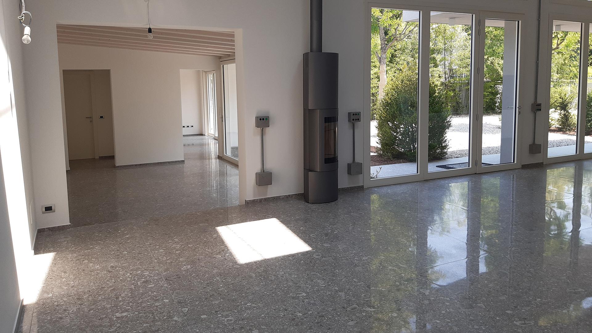 The Grain Stone collection characterizes the rooms of the residence with stone’s essential and primitive appeal. This is further enhanced by the Cage decor with its horizontal and diagonal incisions, which give the surface a striking dynamic and tactile look. Lombarda is a collection inspired by Ceppo di Gré, a type of stone associated with Milan’s 19th-century buildings. Thanks to the choice of this collection, the villa acquired a strong, charismatic aesthetic.