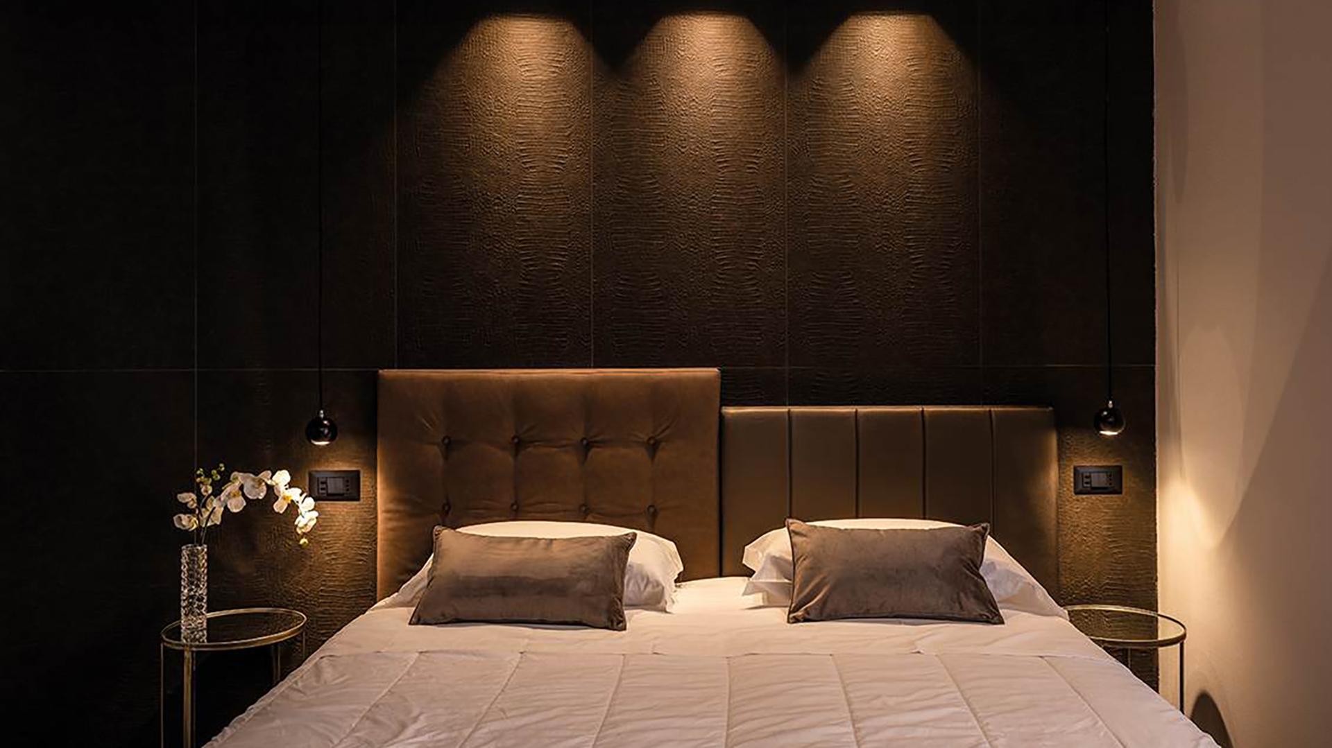 The Biondi Architetti firm was responsible for restyling nine apartment suites in the Hotel Astoria in Bologna, using the No Code collection by Viva.